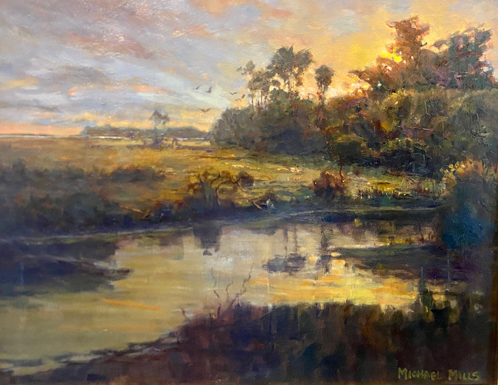 As the sun dips low over the Savannah marshlands it starts to hum with a quiet symphony of color. Pools of still water mirror the heavens, catching whispered notes in a fading melody. Nature is winding down--soft, slow, and reverent.