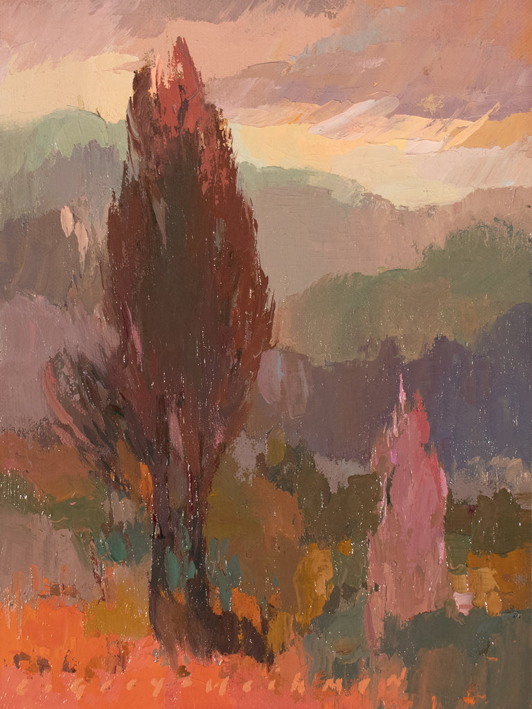 Sonoma County is full of color and texture in the fall months. This is a place not far from home in the hills. I love painting trees, foliage, and rolling hills, especially when the lighting is as dramatic as this day's.