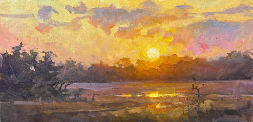 Painted Plein Air on Saint Simon Island. Sunset over the marsh.