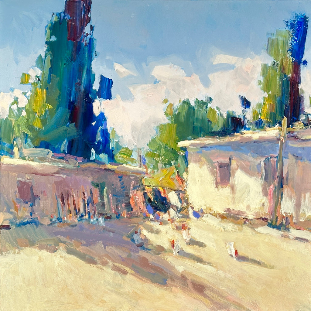 "Echoes of Time" captures the quiet stillness of an old courtyard bathed in the golden glow of the midday sun. The heat lingers in the air, pressing down on weathered stone walls and casting shadows stretching lazily across the ground. Time itself seems to slow, revealing the contrast between the motionless tranquility of the courtyard and the unseen rhythm of the world beyond. This space, worn by history, holds a quiet presence--where the past lingers, the present pauses, and the restless pace of life fades into a moment of pure stillness and reflection.