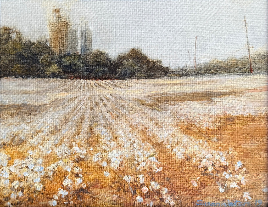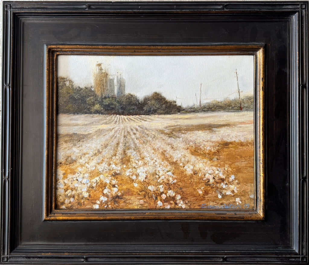 I live in an area of North Georgia where industry and country-life mix, creating interesting blends. It had been a poor year for cotton and the exhausted plants were short and held to their rows. I stood on the verge and painted, so absorbed in the experience that I didn't notice the company of a group of deer until I moved to clean a brush. We startled each other. Oh, the joy of being an artist! This painting hung at the Georgia Capitol Building 2023-25. It placed in American Art Awards, at the Booth Artist Guild show and was short-listed in the Jackson's Painting Prize UK.
