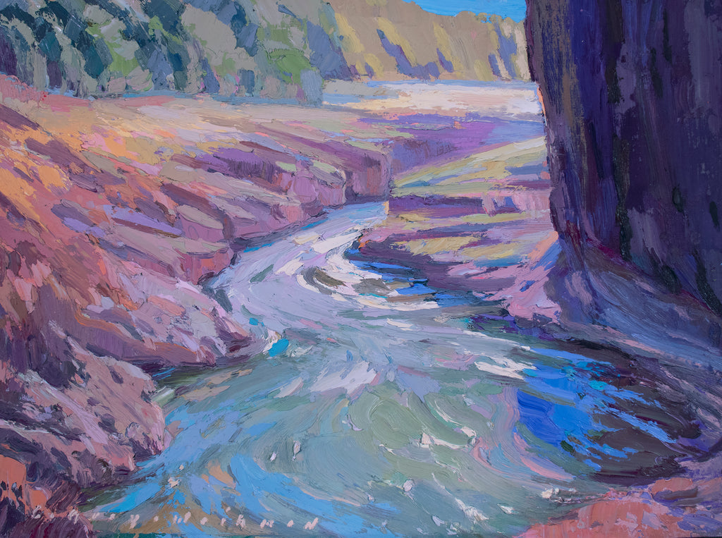 I painted this painting alla prima while participating in the Pacific Northwest Plein Air in 2022. It was a hot afternoon and I was perched on a rock overhang overlooking the Klickitat River. It was such a challenging day of painting, but so rewarding. It's a very memorable place for me and I've painted along this river many times.