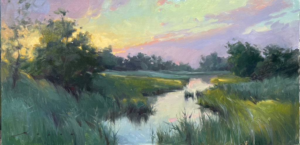 One of the magical times of the day when the sun just starting to pick above the horizon. It is the time that I cherish for it's golden hues and the lavender skies against the cool shadows. It is the high tide in the low country and the fist colors of the day.