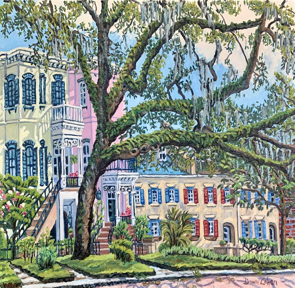 This is one of my favorite view of row homes in the victorian district of Savannah, GA. I love it because of the live oak that flows through the structures of this view.