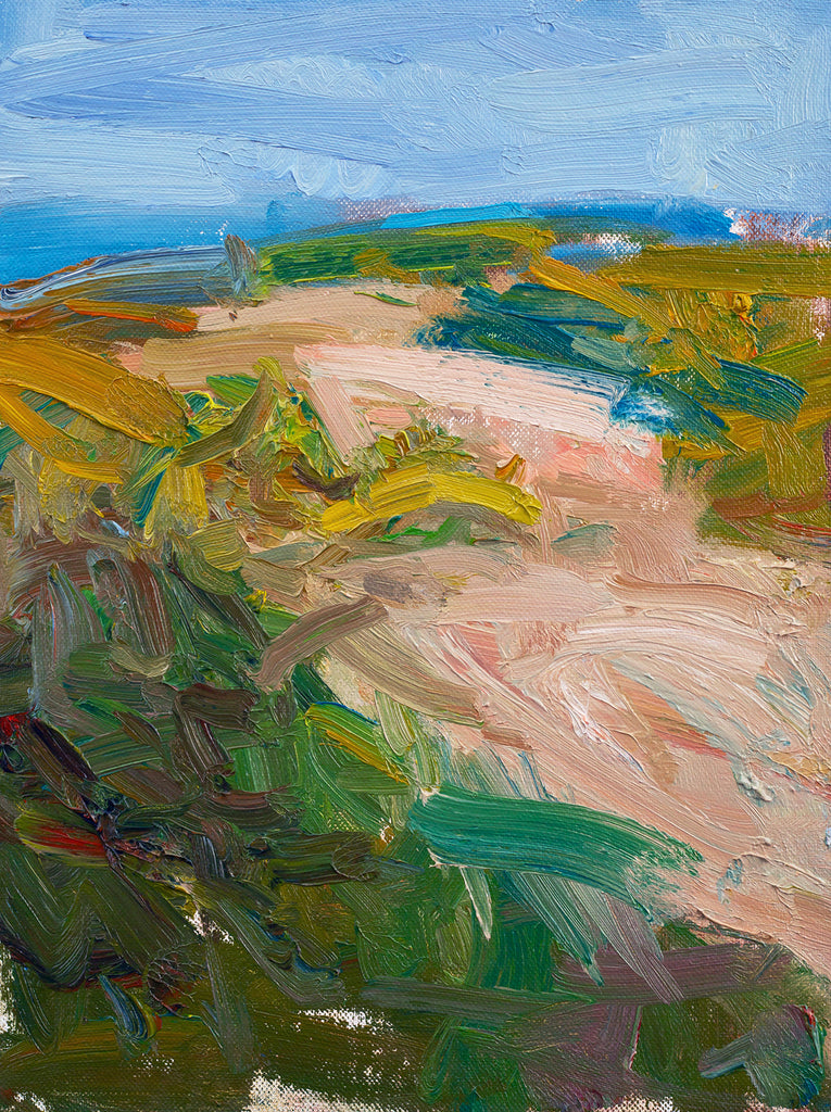Painting of dunes and Lake Michigan from the Gillson Beach park in Wilmette, Illinois
