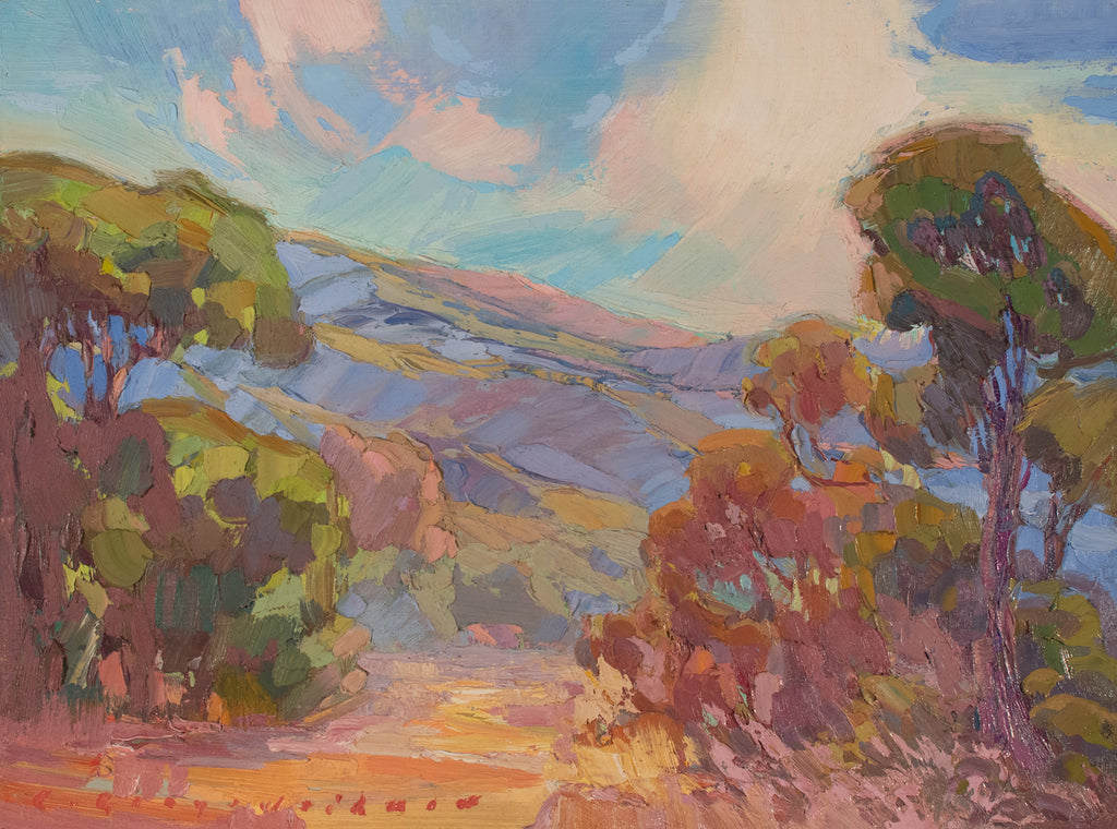 This painting was painted en plein air during the Carmel Art Festival in 2022. It was later exhibited at the LPAPA Gallery in Laguna Beach, CA, for the 2nd Annual Signature Member Showcase. I painted this scene on a breezy but pleasant morning in one of my favorite painting locations in Carmel Valley in Garland Regional Park. It has since been in my collection and used as a reference to create a large studio piece.