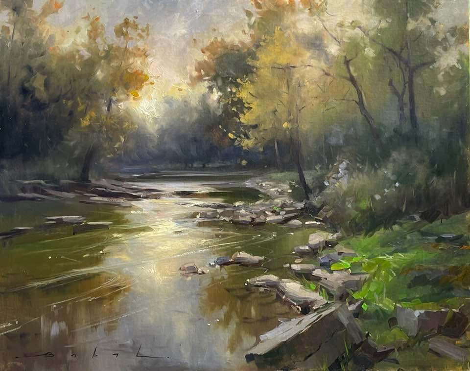 "Riverside Reverie" was painted in Blue Ridge mountains