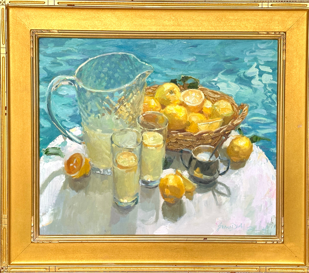 Peonies were almost in full bloom when I arrived to paint in the Olmstead plein air paint out! What LUCK! I wait all year to see these, my most favorite flower...I think! I had to add the peaches, after all, we are in Georgia! I set up the still life in the front yeard of my hosts house, lucky he is my cousin and he let me keep it up for three days. I hope it was not to noticible from the street, with the bushes and trees blocking it.