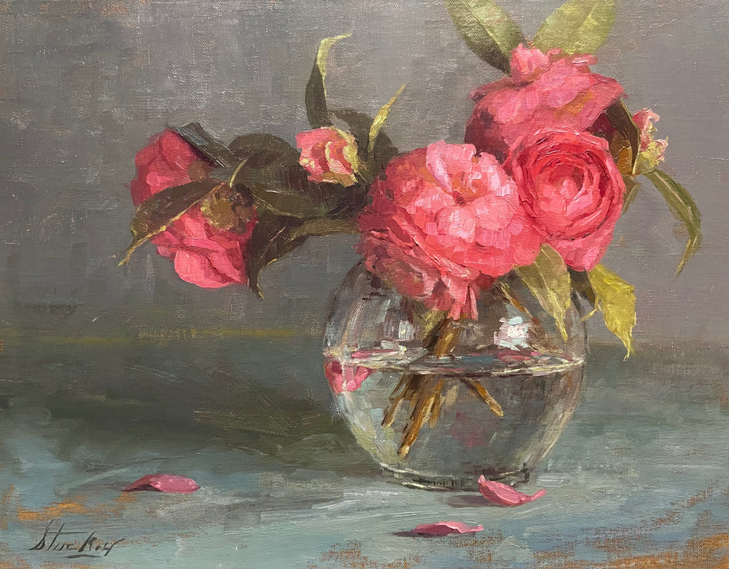 The promise of spring comes early in the south, and as the camellias begin to bloom they are just begging to be painted.