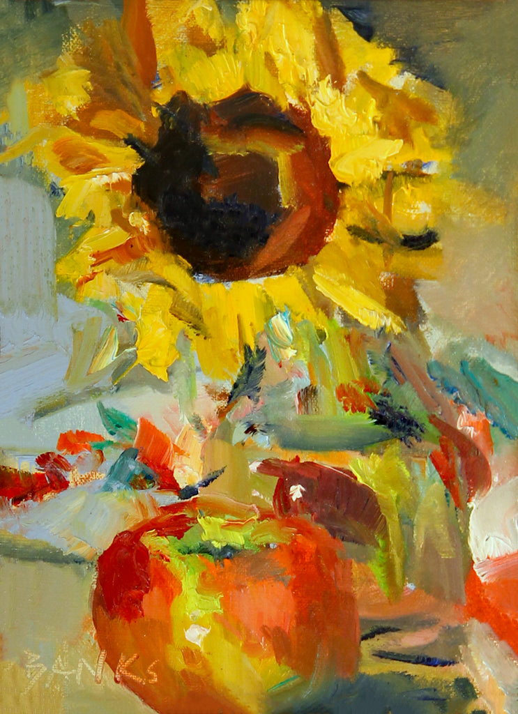 I try to take full advantage of any flowers in the house. That means preserving them this wall ... through painting.