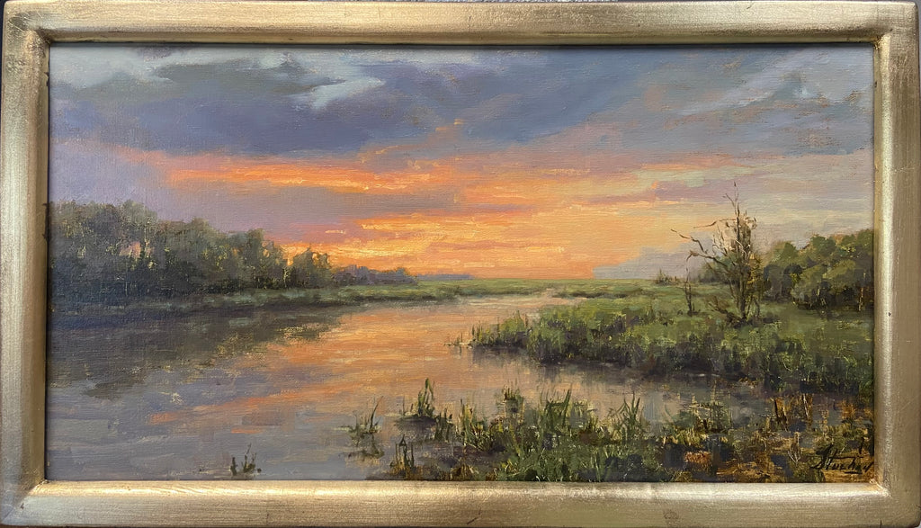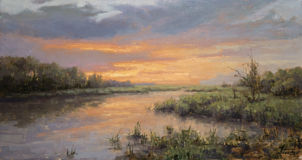 The stillness of the land and air prepares to give way to the night as the last light fires up the sky.