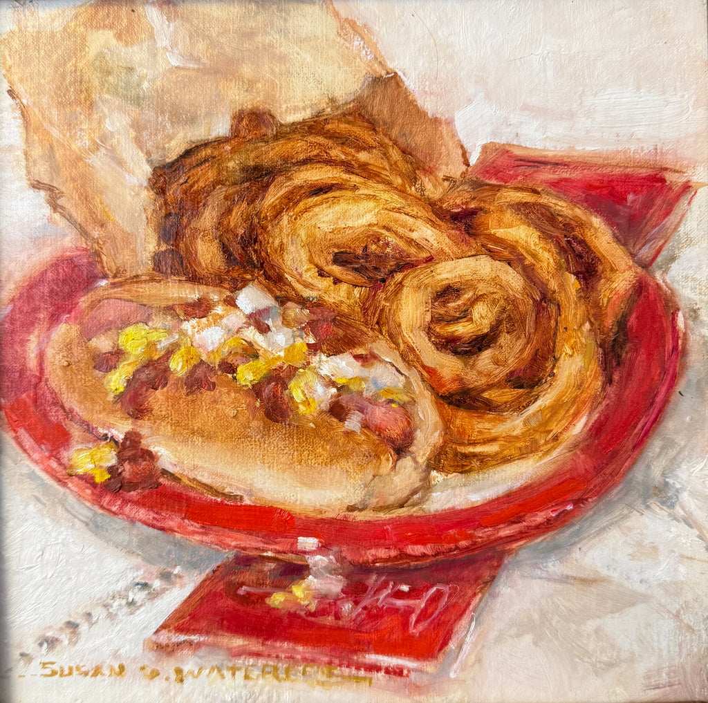 A sampling of the fare from the iconic Varsity of Atlanta, painted as a demo on the Meet the Artist's reception
